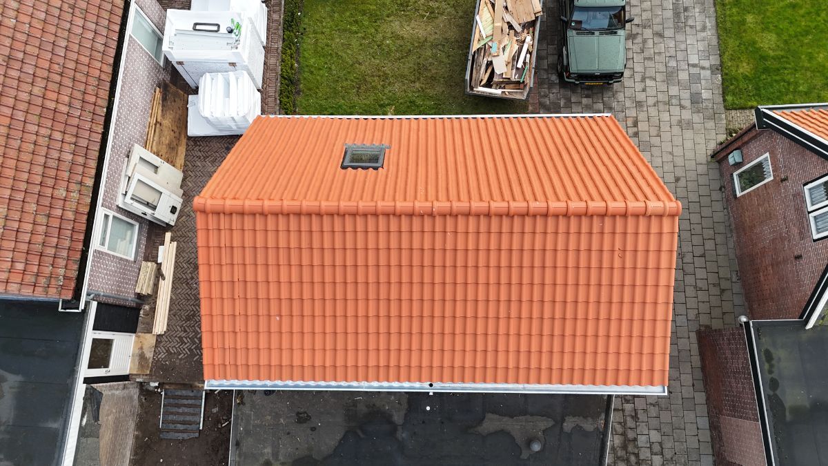 Voor dit project hebben wij het bestaande dak volledig verwijderd tot op het houten dakbeschot. Vanuit deze solide basis hebben wij het dak opnieuw opgebouwd met hoogwaardige PIR-renovatieplaten met een isolatiewaarde van RC 4.5. Hiermee is de woning aanzienlijk verbeterd op het gebied van energieprestatie en wooncomfort. Aansluitend hebben wij een dampopen folie aangebracht voor optimale bescherming tegen vocht en condensvorming. Het dak is vervolgens afgewerkt met nieuwe OVH-dakpannen, waarmee het geheel weer een frisse en duurzame uitstraling heeft gekregen.